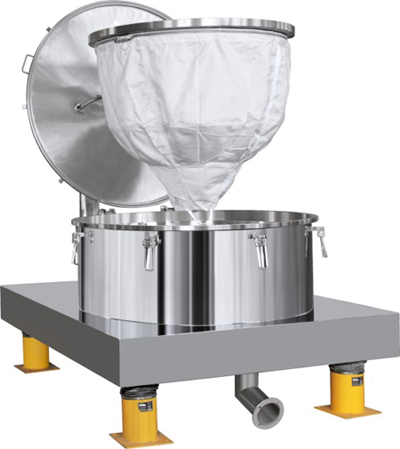 SD/PSD型离心机均为密闭型、间歇操作、吊袋异地卸料的过滤设备。物料由上部加入转鼓,在离心力场的作用下,液相穿过过滤介质排出机外,固相物截留在转鼓内,停机后用吊具将拦液板和滤袋一同吊出,到指定地点卸料。具有启动平稳、分离因数可调、容量大、效率高、操作简便、卸料快捷、安全性能好、环境洁净、劳动强度低等特点。
